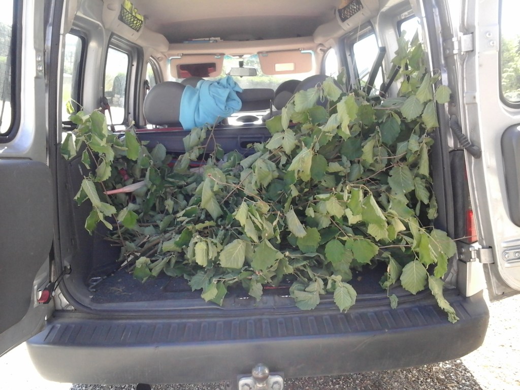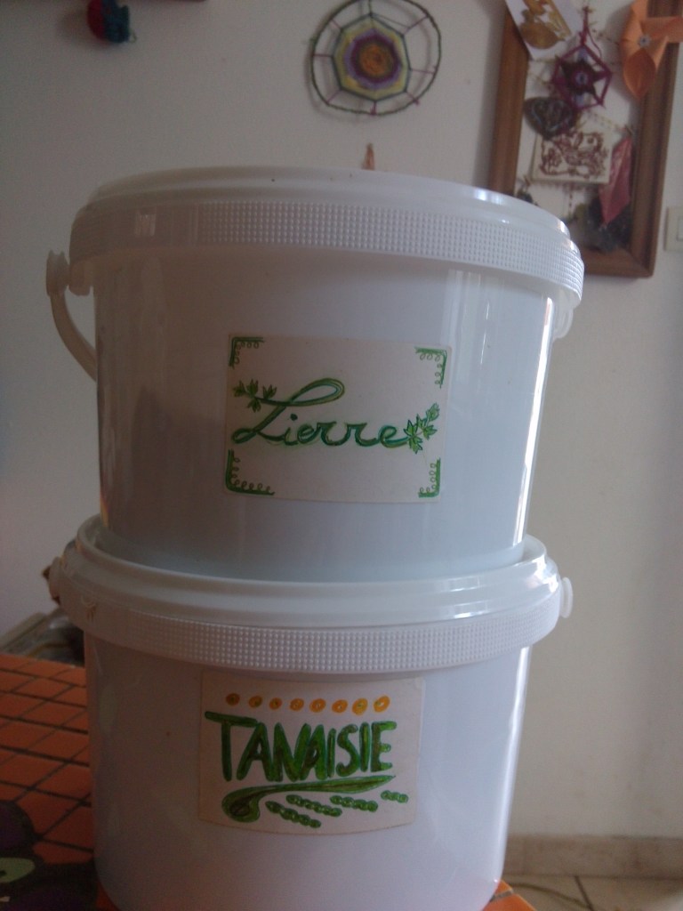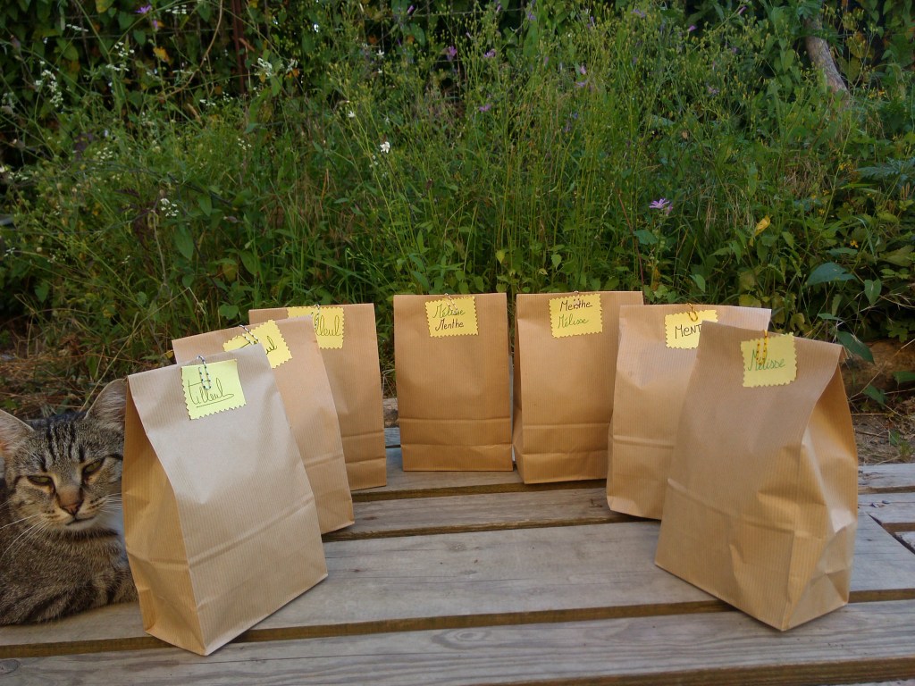 Ensuite pour le stockage, j’ai récupéré des seaux alimentaires et des sacs en kraft. Les feuilles de Tilleul et Noisetier ont permis à mon compagnon d’arrêter le tabac. On appele ça la « Naturette » ! Cela permet de réduire sa consommation de nicotine, en mélangeant au début au tabac, il est possible de continuer à fumer uniquement des plantes sans dépendance… La plupart des feuilles d’arbres et de plantes se fument comme le charme ou le framboisier.