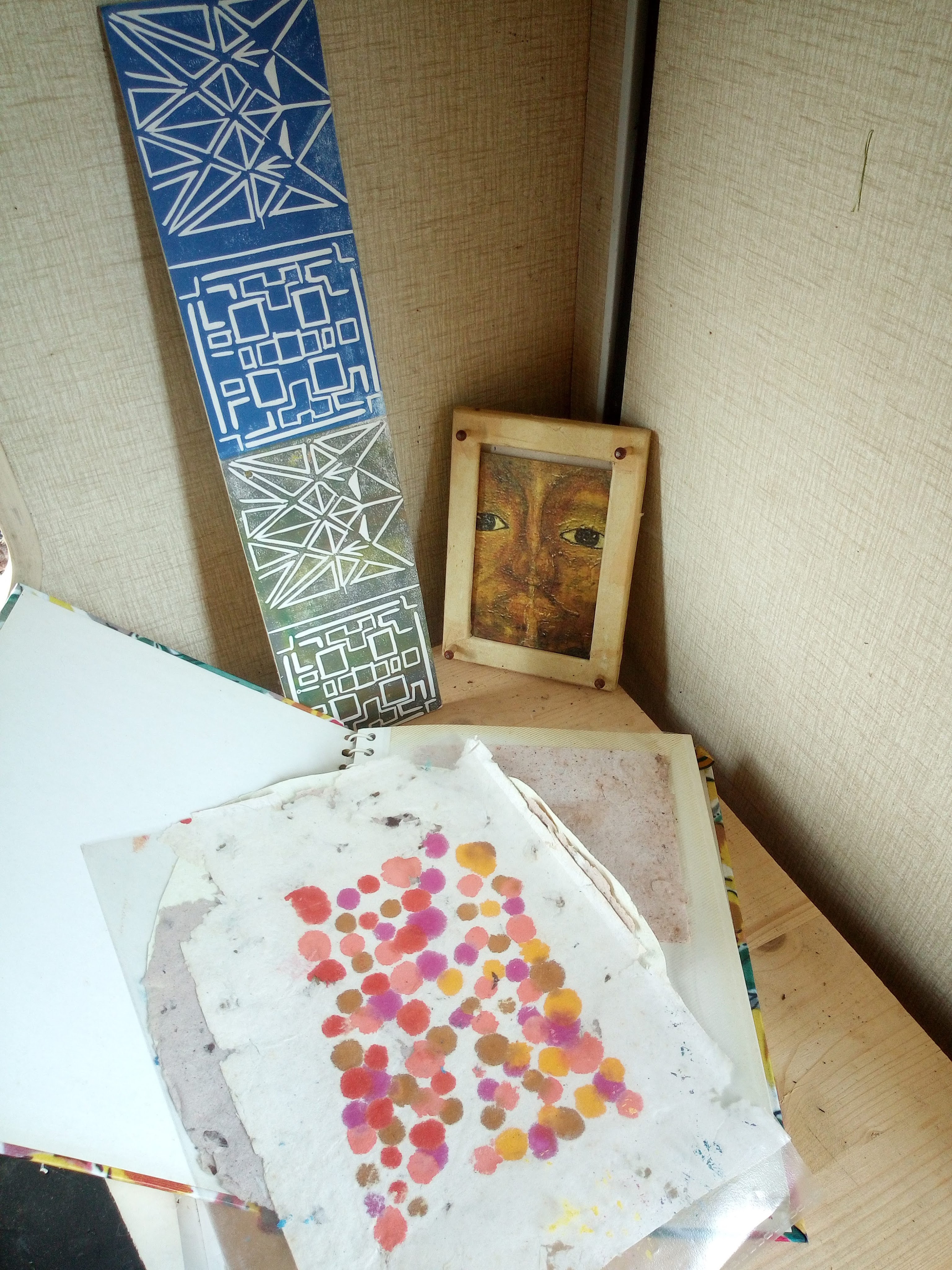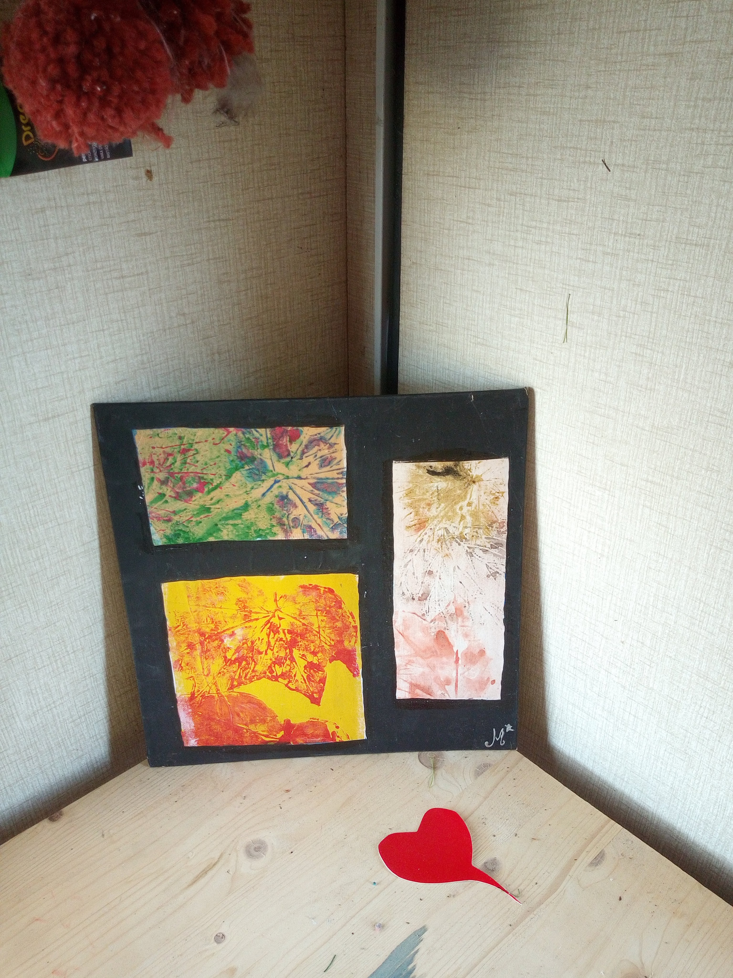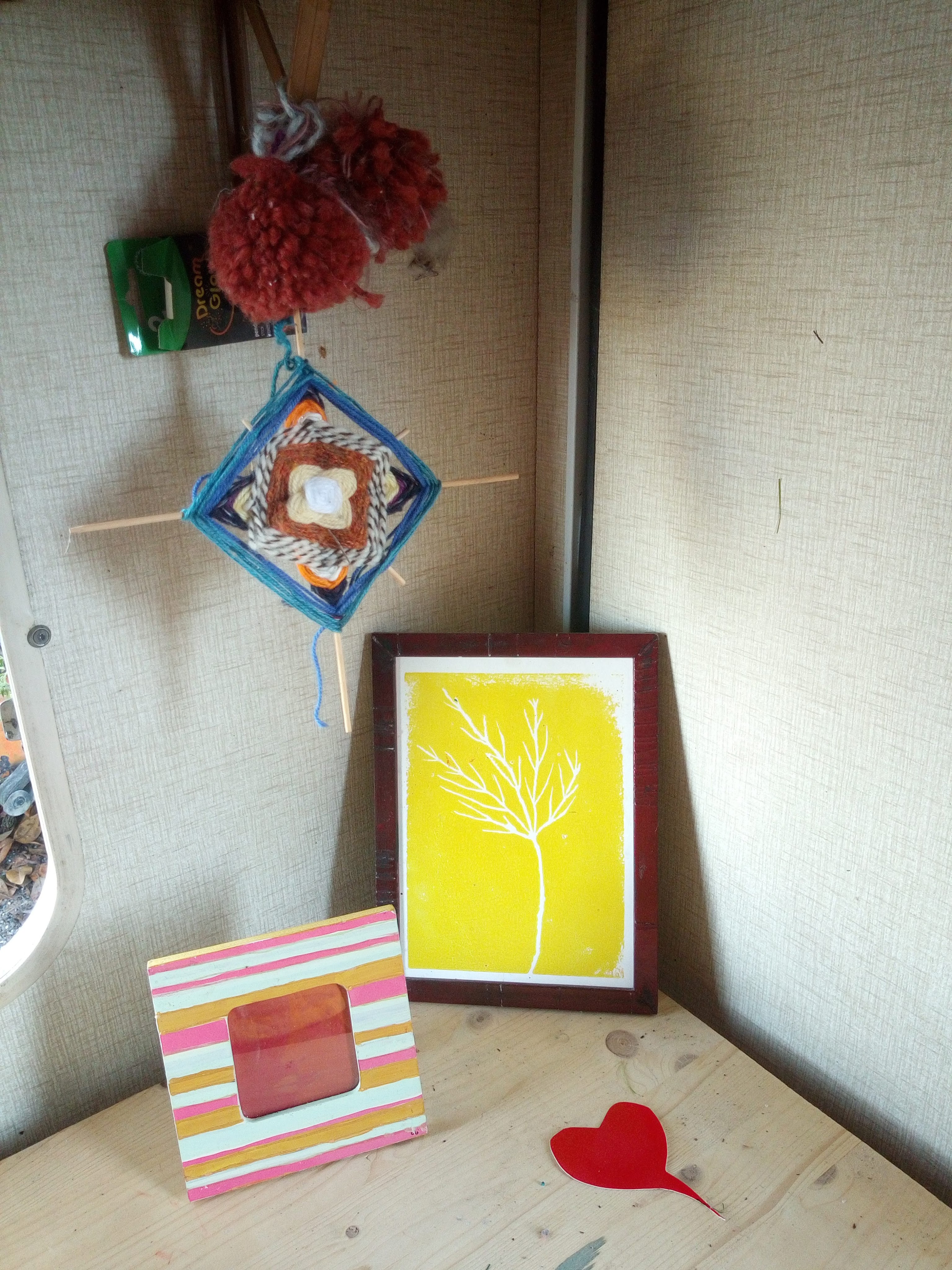 C’est un mélange entre mes impressions de gravures originales contrecollés sur du carton mousse accroché avec du Makramé ( fil de coton).